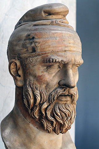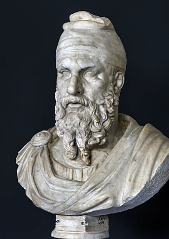 Buste dit de Décébale découvert sur le forum de Trajan et exposé dans la galerie du Braccio Nuovo des musées du Vatican