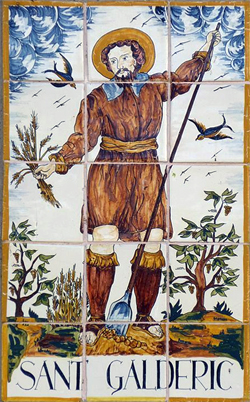 En Roussillon, il existe depuis des temps très anciens une véritable vénération pour Sant Galdric. La tradition veut que le comte Guifré de Cerdagne au IXe siècle soit à l’initiative de la recherche de ses reliques. Il aurait envoyé deux hommes à lui, qui auraient obtenu ces reliques du saint laboureur au village de Viéville dans l’Aude, près de Fanjaux, en s’adressant au saint dans ces termes : « Glorieux Sant Galdric, si vous nous permettez d’emporter vos reliques, nous les placerons en un lieu où elles seront honorées. » Et ils les portèrent au monastère de Saint Martin du Canigou que venait justement de fonder le comte. Une autre tradition veut que ce soit Sclua, le premier abbé de Saint Martin, qui aurait envoyé deux de ses moines voler les reliques à Viéville. (11) La vénération de notre Saint Gaudérique a passé les Pyrénées puisque on la retrouve en Catalogne sud à Tavernoles, où l’on chantait des « goigs i precs » à « Sant Galdric del Rosselló patró dels pagesos catalans ». Et on l’invoque encore aujourd’hui, dans toute l'ère catalane, pour faire tomber la pluie en chantant des cantiques à sa gloire, les « goigs », pendant les processions. |