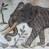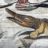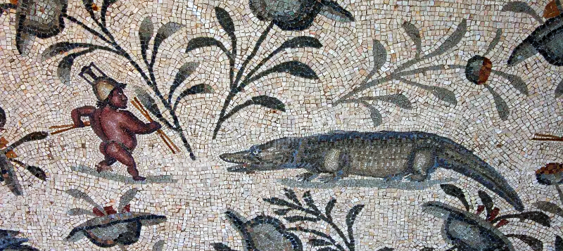Pygmée combattant un crocodile - Mosaïque nilotique de la villa Silin - Libye - IIe siècle après JC