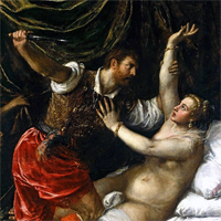 Presque exactement contemporain d'Octave Auguste, Tite Live le Pompéien est pourtant resté républicain dans l'âme et exalte dans son Histoire de Rome depuis sa fondation (Ab Urbe condita libri) les hauts faits et les valeurs de ceux qui ont donné à Rome sa grandeur. C'est particulièrement le cas, dès le livre I, dans l'épisode de Lucrèce, la vertueuse matrone violée par le fils du dernier roi étrusque et dont le suicide serait à l'origine de la fondation de la République romaine en 509 av.JC. Les circonstances tragiques du renversement de la royauté semblent bien légendaires, mais la typologie des personnages obéit au projet moralisateur d'un historien qui ne manquera pas de valoriser les représentant(e)s du mos majorum, tout autant qu'il stigmatisera ceux qu'il tiendra pour responsables d'une décadence dont Salluste avant lui, puis Juvénal, sont aussi les critiques. |