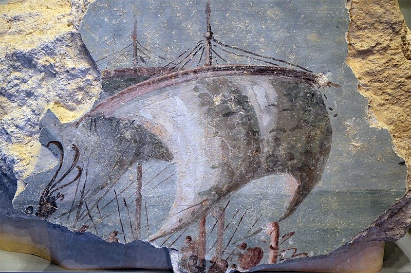La bataille d'Actium - Fragment de fresque découvert dans l'Herodium d'Hérode le Grand - 15 av.JC
