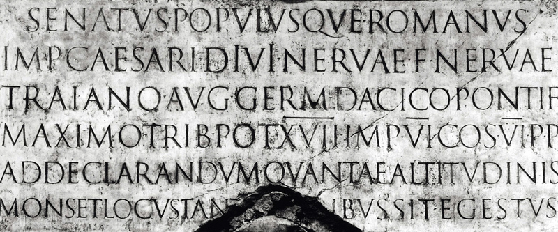 La titulature de l'empereur Trajan sur la base de la colonne Trajane
