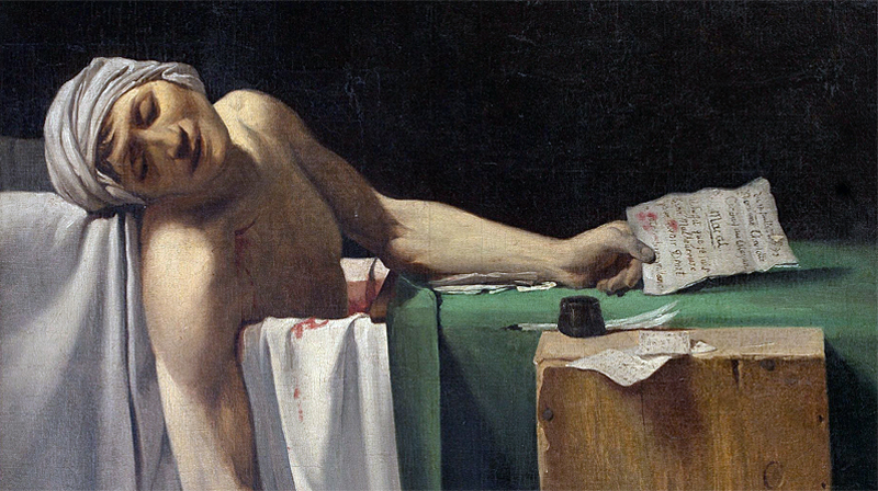 Il n'est pas besoin d'être un roi ou un grand personnage pour être considéré comme un tyran. Dans la rhétorique révolutionnaire, les Montagnards peuvent l'être aux yeux des Girondins, des royalistes, et plus généralement de tous ceux qui après l'exécution de Louis XVI voient glisser la Révolution dans la Terreur. Le 13 juillet 1793, une jeune fille, après avoir soigné sa toilette et acheté un couteau, trouve le moyen de pénétrer dans la demeure de Marat. On dira plus tard qu'elle avait relu le Livre de Judith... |
