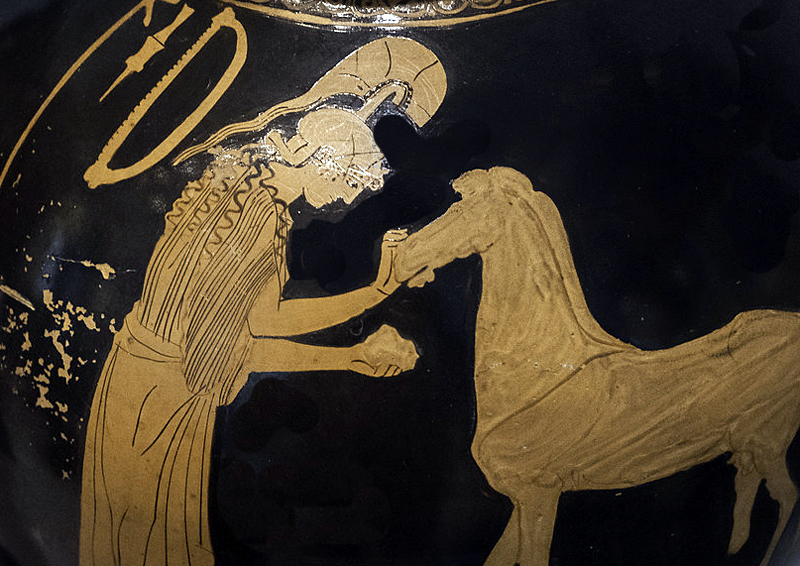 Athéna Erganè modelant une statue de cheval - Oenochoé à figures rouges - 470-460 av.JC - Altes Museum de Berlin