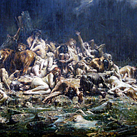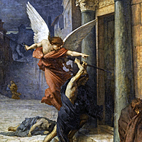 Ce dossier peut prolonger celui qui a été consacré au pouvoir et à la violence des dieux gréco-romains. Si le bien-fondé du châtiment par les dieux ou Dieu de l'orgueil d'individus qui les provoquent en sortant de leur condition peut sembler parfois discutable, celui de fléaux balayant des collectivités entières est encore plus problématique : il pose en effet avec acuité celui de l’existence du Mal sur terre : est-elle compatible avec la conception d’une divinité omnipotente et juste ? 1. L’explication par la rétribution (les dieux / Dieu châtient les fautes / crimes / péchés des hommes) a le mérite de la cohérence logique et se trouve abondamment représentée dans la mythologie gréco-romaine comme dans la Bible (Ancien Testament). Pour faire cesser les pestes, envoyées par la divinité comme des avertissements collectifs, les hommes doivent mettre fin au scandale : trouver les coupables (Agamemnon, Œdipe) ou se repentir et se convertir pour retrouver le chemin de Dieu (Grégoire Ier). 2. Mais au XVIIIe siècle, le tremblement de terre de Lisbonne, responsable de milliers de morts innocentes, suscite des interprétations contradictoires :
