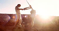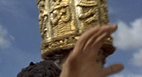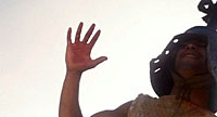 Toute la scène s’apparente à un rêve ; le décor minéral, les coiffes étranges, les nombreux effets de répétition, les violents effets de contre-jour à chaque meurtre.
