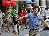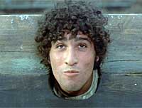 1968 Teorema : Angelino, le facteur qui remet le télégramme à une famille milanaise annonçant l’arrivée du visiteur qui bouleversera leur vie. Messager du malheur, il arrive heureux et insouciant sautillant et battant des bras comme un oiseau qui veut prendre son envol.