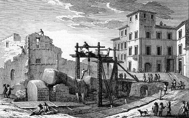 Excavation de l'obélisque d'Auguste en 1748 - Gravure de Giuseppe Vasi - Le magnificenze di Roma, 1747-1767