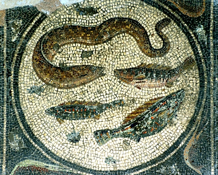 2/ Des emblemata de poissons en opus vermiculatum