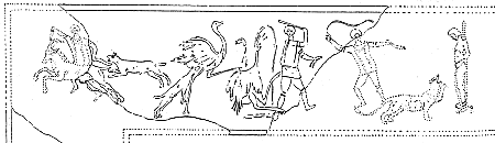 Sur la frise orientale, en haut à gauche, un chien