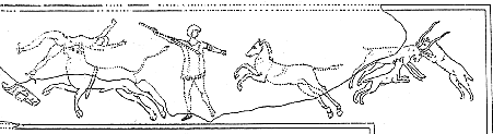 poursuit une antilope, tandis que plus bas, un autre chien