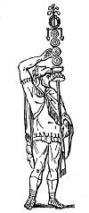 Porte-enseigne dans les armées romaines (Cic. Div. I, 35 ; Caes. B.G. II, 25) ; terme général sous lequel on comprend différents officiers de rang inégal dont chacun recevait son titre particulier de l'espèce d'enseigne qu'il portait ; ainsi il y avait l'imaginifer, le draconarius, etc, et toutes ces enseignes étaient comprises sous le nom général de signa militaria. La figure ci-jointe, d'après la colonne Trajane, représente le signifer d'une cohorte, portant une enseigne différente de celles que nous avons nommées. |