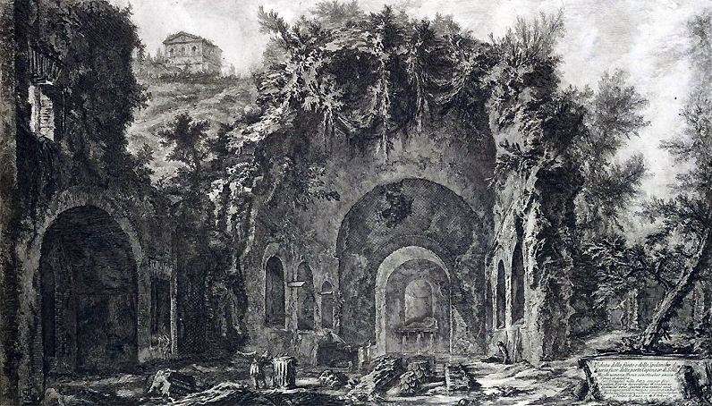 Le nymphée d'Egérie près de Rome - Gravure de Giovanni Battista Piranesi in Vedute di Roma, 1779 - Internet Archive