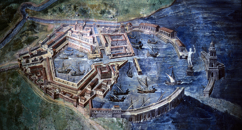 Fresque du XVIe s. représentant le port d'Ostie à l'époque romaine - Musées du Vatican, Salle des Cartes (Rome), 2001