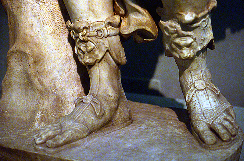 l.c.). Les lacets, qui sont omis dans le bronze