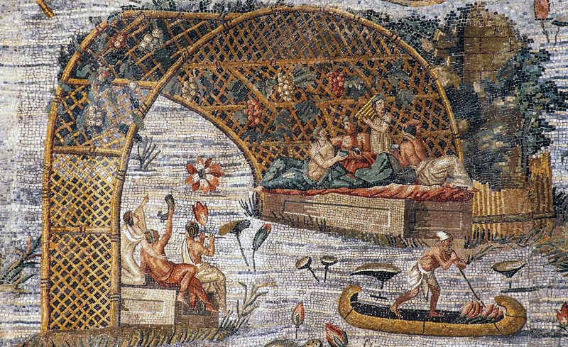 Tonnelle au bord du Nil, reproduite sans ses personnages par A.Rich - Mosaïque du Nil de Palestrina (Italie), 1996 - © Agnès Vinas