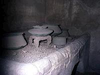 La gravure représente un fourneau de cuisine de la maison de Pansa à Pompéi, avec quelques ustensiles qu'on y découvrit quand on les trouva dans les fouilles, c'est-à-dire une passoire (colum), un couteau de cuisine (culter coquinaris) et un ustensile pour préparer les oeufs (un apalare, à ce qu'on suppose).