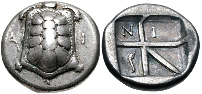Drachme éginète en argent, frappée entre 350 et 338 av.JC - © Numista