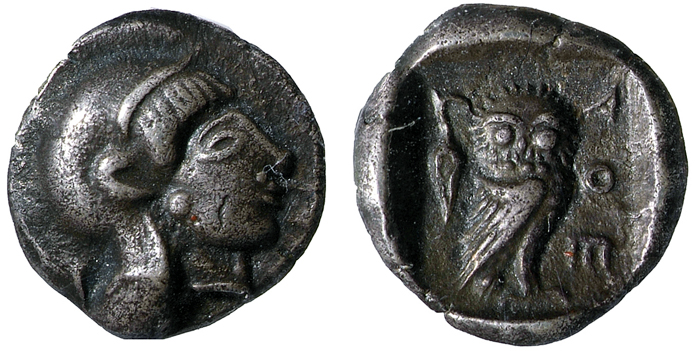 Obole d'argent frappée à Athènes entre 594 et 527 av.JC - © The Trustees of the British Museum