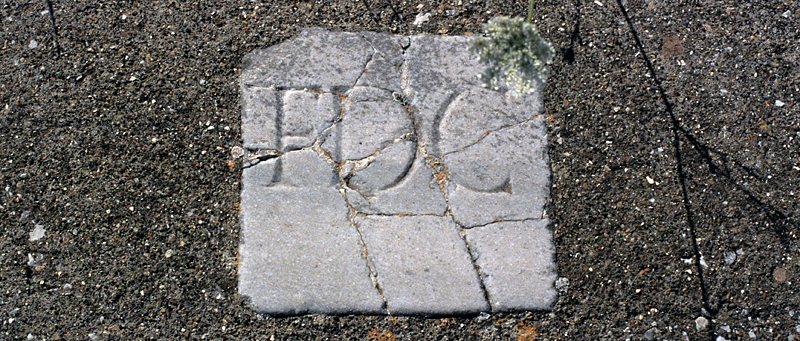 F(ulgur) D(ium) C(onditum) : Ici est ensevelie la foudre divine. - Inscription consacrant la Maison Foudroyée, Ostie (Italie), 2001 - © Agnès Vinas