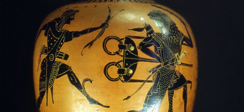 Conflit entre Apollon et Héraklès à propos du trépied de Delphes - Œnochoé à figures noires, v. 520 av.JC