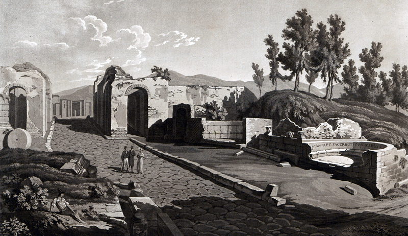 J.W.Huber- Entrée de Pompéi du côté d'Herculanum - in Vues pittoresques des ruines les plus remarquables..., 1824, t.II, pl.3 - E|rara