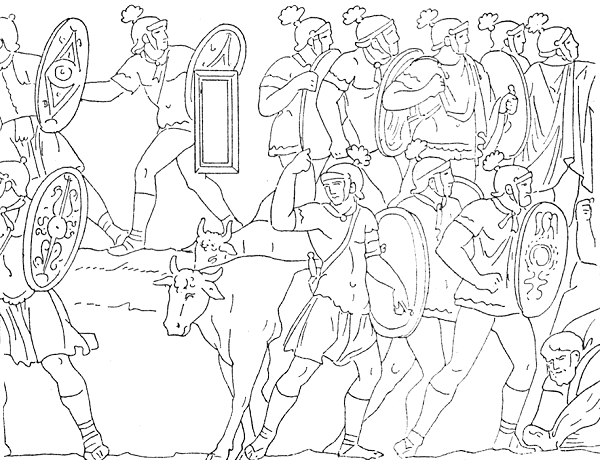 Quatre chefs celtiques (?) avec leurs femmes et leurs troupeaux
