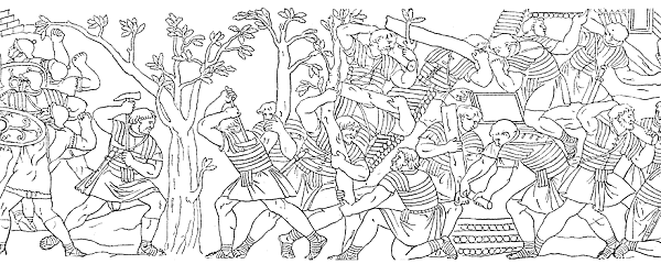 L'attaque s'appuie sur un retranchement construit avec des arbres abattus.