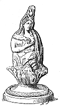 ![]() | Elle est elle-même le type divin de l'amour maternel ; sur quelques monuments de style égyptisant, sa coiffure est formée de la dépouille d'un vautour, parce que, dans l'écriture hiéroglyphique, le vautour représentait le mot mère. A l'image d'Isis, les artistes associent souvent celle de son fils Harpocrate ; tantôt c'est un nourrisson qu'elle serre contre sa poitrine, rappelant par son attitude les déesses kourotrophoi ; tantôt c'est un jeune garçon, presque un adolescent, qui se tient debout à ses côtés. On voit aussi groupés les trois personnages de la triade divine, type idéal de la famille, Sérapis, Isis et Harpocrate. | ![]() |
