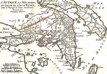 I. [1] Dans cette partie du continent de la Grèce qui regarde les Cyclades et la mer Egée, s'élève, à l'entrée de l'Attique, le promontoire de Sunium. Au bas est une rade, et au haut un temple dédié à Minerve Suniade. Quand vous allez par mer à Athènes, et que vous avez passé ce promontoire, vous voyez un peu plus loin la montagne de Laurium, où les Athéniens avaient autrefois des mines d'argent. Vous trouverez ensuite l'île Patrocle de peu d'étendue, et qui même aujourd'hui est déserte ; ainsi dite du nom de Patrocle qui l'avait entourée de murs, et fortifiée d'un bon rempart. C'était le commandant d'une flotte égyptienne, que Ptolémée Philadelphe envoya au secours des Athéniens, lorsqu'Antigonus fils de Démétrius, à la tête d'une armée, ravageait leur pays, et tenait leurs places maritimes bloquées avec ses vaisseaux.