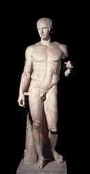 Auguste est représenté dans la position très romaine du général faisant une adlocutio à ses troupes, mais le modèle esthétique de la statue est à l'évidence grec : la position du corps est inspirée de celle du Doryphore de Polyclète (l'original date du Ve siècle avant JC), et les pieds nus donnent au modèle l'allure des dieux grecs de l'âge classique. |