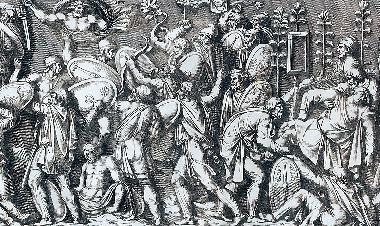 - Scène CXL - Certains Daces se suicident, tandis que d'autres s'enfuient.
