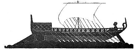 Beau navire qui m'as menée ici, le long des côtes de l'Ionie, je t'abandonne aux flots brillants, et d'un pied léger je saute sur la grève.
