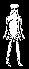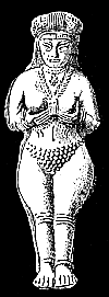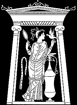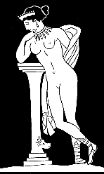 La petite Aphroditê gardienne qui protège Mnasidika fut modelée à Camiros par un potier fort habile. Elle est grande comme le pouce, et de terre fine et jaune. | ![]() | De la main droite, elle désigne sa divinité, qui est criblée de petits trous sur le bas-ventre et le long des aines. Car elle est la Très-Amoureuse. |