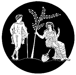 Tu vas retourner au pays où la vierge est l'amie des nymphes. N'oublie pas de remercier les conseillères invisibles, et porte-leur en offrande ce rameau cueilli par mes mains.