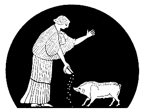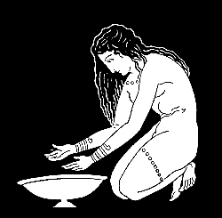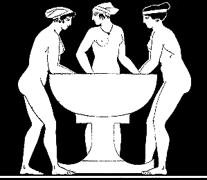 Tu feras porter dans la chambre deux bassins avec de l'eau, une lampe pleine, un cratère et des kylix. Tu secoueras les couvertures et tu battras les coussins.