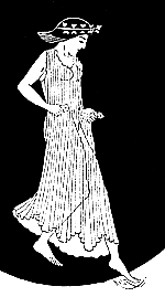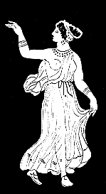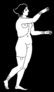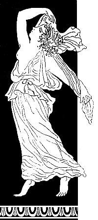 Anthis, danseuse de Lydie, a sept voiles autour d'elle. Elle déroule le voile jaune, sa chevelure noire se répand. Le voile rose glisse de sa bouche. Le voile blanc tombé laisse voir ses bras nus. | ![]() |