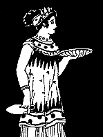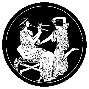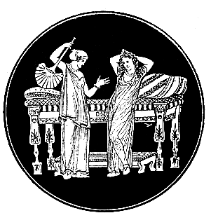 ![]() | Myromêris et Maskhalê, mes amies, venez avec moi, car je n'ai pas d'amant ce soir, et, couchées sur des lits de byssos, nous causerons autour du dîner. |