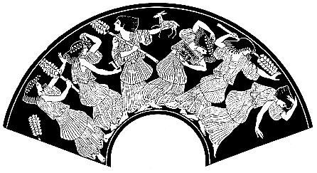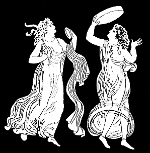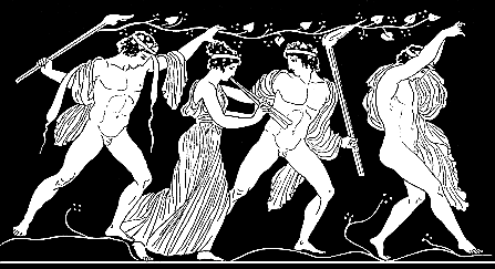 Toutes, sous la bassaris et les couronnes de pampre, couraient et criaient et sautaient, les crotales claquaient dans les mains, et les thyrses crevaient la peau des tympanôns retentissants.