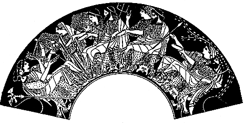 A travers les forêts qui dominent la mer, les Ménades se sont ruées. Maskhalê aux seins fougueux, hurlante, brandissait le phallos, qui était de bois de sycomore et barbouillé de vermillon.