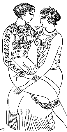 Un voile et les rubans de mes jambes. Vous voyez : il y a du sang. Par l'Apollôn c'est malgré moi ! Je me suis bien défendue ; mais l'homme qui aime est plus fort que nous.