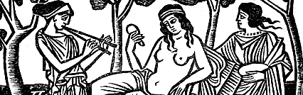 Tu étais jalouse de nous, Gyrinno, fille trop ardente. Que de bouquets as-tu fait suspendre au marteau de notre porte ! Tu nous attendais au passage et tu nous suivais dans la rue.