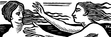 Comme nous marchions sur la plage, sans parler, et enveloppées jusqu'au menton dans nos robes de laine sombre, des jeunes filles joyeuses ont passé.