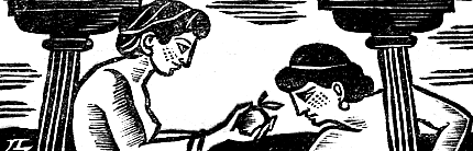 - Dis aussi : qui te vend ton fil à broder ? Le mien se casse dès qu'on le regarde. - Je le fais moi-même, mais Naïs en vend d'excellent. - A quel prix ? - Trois oboles. - C'est cher. Et l'objet ? - Deux drachmes. - Adieu».