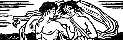 Ah ! Gyrinno ! avec l'amour mes larmes aussi débordent ! Essuie-les avec tes cheveux, ne les baise pas, ma chérie ; et enlace moi de plus près encore pour maîtriser mes tremblements.