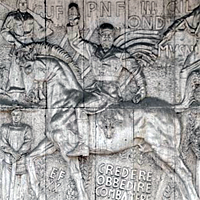 Alfredo Gauro Ambrosi - Benito Mussolini dominant la via dei Fori imperiali nouvellement tracée entre le Colisée et la piazza Venezia