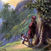 Robinson secourant Vendredi - Gravure d'Alexander Franck Lydon pour l'édition de 1865