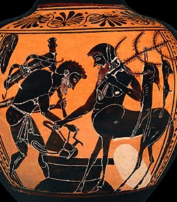 Héraclès chez Pholos, Hydrie à figures noires
