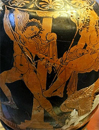 Pelike attique à figures rouges, par le peintre d'Achille - 450-440 av.JC Altes Museum Berlin |