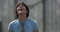 1968 Teorema : Angelino, le facteur qui remet le télégramme à une famille milanaise annonçant l’arrivée du visiteur qui bouleversera leur vie. Messager du malheur, il arrive heureux et insouciant sautillant et battant des bras comme un oiseau qui veut prendre son envol.